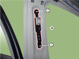 Extraiga el tornillo del anclaje superior del cinturón de seguridad delantero. (Consulte "Cinturón del asiento delantero: Retractor del cinturón del asiento delantero") |