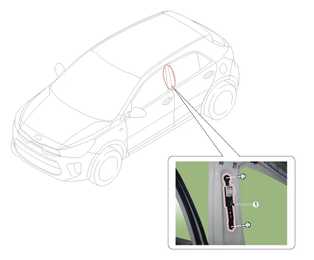 Componentes y localización de los componentes LOCALIZACIÓN DE LOS COMPONENTES 1. Retractor del cinturón del asiento delantero Procedimientos de reparación Sustitución 1.