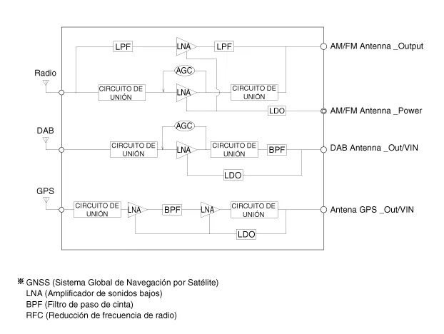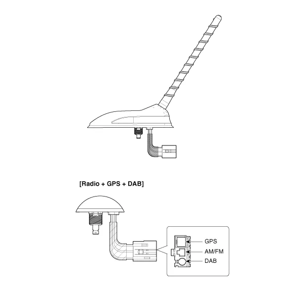 Conecte el conector de alimentación de la antena del techo y los conectores de la antena de la radio. |