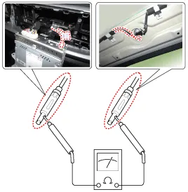 Procedimientos de reparación Inspección • Envuelva con papel de aluminio el hilo del voltímetro para evitar dañar la línea de calefacción.