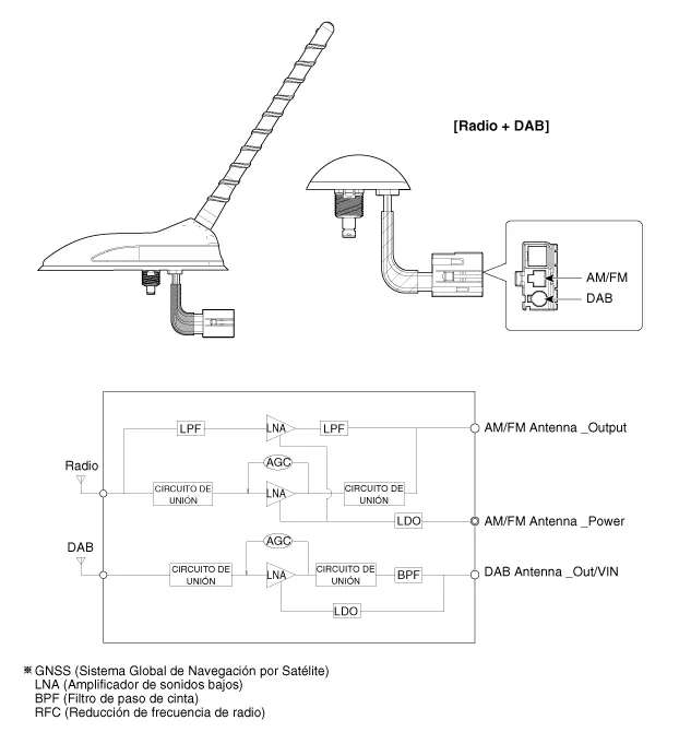 | [Antena del techo (Radio+DAB)] |