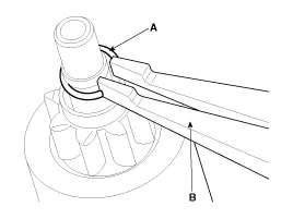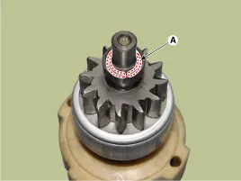 Si el piñón de arrastre del motor de arranque está desgastado o dañado, cambiar el conjunto del embrague de rueda libre. (El piñón no está disponible por separado). Compruebe el estado del volante o del convertidor de par si los dientes del engranaje de transmisión del motor de arranque están dañados. |