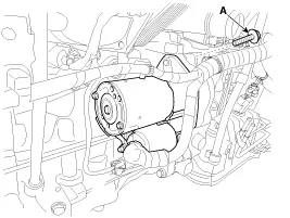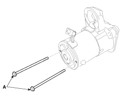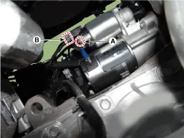 Extraiga el perno inferior de fijación del motor de arranque (A).