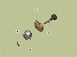 Desconecte el tope (A), el embrague de sobremarcha (B), el piñón interno (C) y el eje planetario (D).