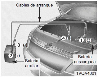 Arrancar con la batería de otro vehículo puede ser peligroso si se realiza de forma incorrecta. Por tanto, para evitar lesionarse o causar desperfectos al vehículo o la batería, siga los procedimientos para arrancar con la batería de otro vehículo. Si tiene dudas, le recomendamos encarecidamente que un técnico competente o un servicio de grúa lo haga por usted.
