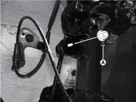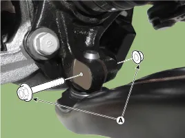 Afloje los pernos (A) y después desmonte el conjunto de la barra estabilizadora.