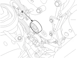 Desmonte la cubierta de la cadena de distribución (B) con una llave (A).