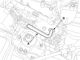 Desmonte el soporte de fijación del motor (A) tras extraer los pernos y las tuercas de montaje.
