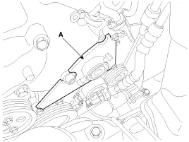 Fije el extractor de la bomba de combustible de alta presión y el tope (A) [N° de herramienta especial: 09331-2A010] tras elevar el lado DCH del motor con un gato.