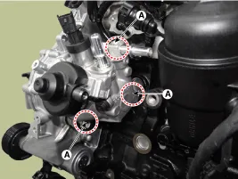 Retire los pernos de montaje de la bomba de combustible de alta presión (A).