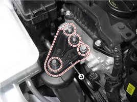 Extraiga los pernos de montaje de la cubierta de la cadena de distribución (A).