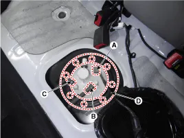 Extraiga la cubierta de la placa (D) después de desmontar los pernos de instalación y después desmonte la bomba de combustible del depósito de combustible.