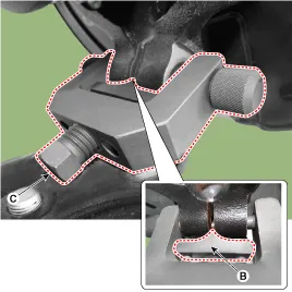 Retire la junta de rótula de la bieleta (C) del portamangueta con la herramienta especial (09568-34000).