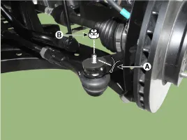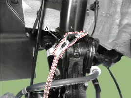 Extraiga la tuerca y el perno del brazo inferior (A).