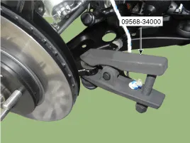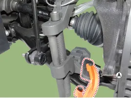Desmonte el brazo inferior delantero del portamangueta delantero con la herramienta especial (0K545-A9100).