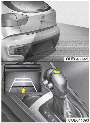 La cámara de visión trasera se activará cuando se encienda la luz de marcha atrás con el interruptor de encendido en ON y la palanca de cambios en la posición R (marcha atrás).