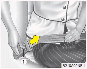 Cuando desee soltar el cinturón, apriete el botón (1) en la hebilla de sujeción.