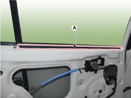 Extraiga el burlete interior de la correa de la puerta delantera (A).