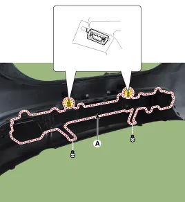 Desmonte el conjunto de la barra del parachoques trasero (A) después de aflojar los pasadores de fijación.