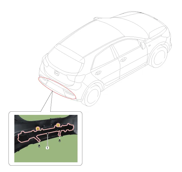 Componentes y localización de los componentes LOCALIZACIÓN DE LOS COMPONENTES 1. Cubierta del parachoques trasero Procedimientos de reparación Sustitución Póngase guantes para proteger sus manos.
