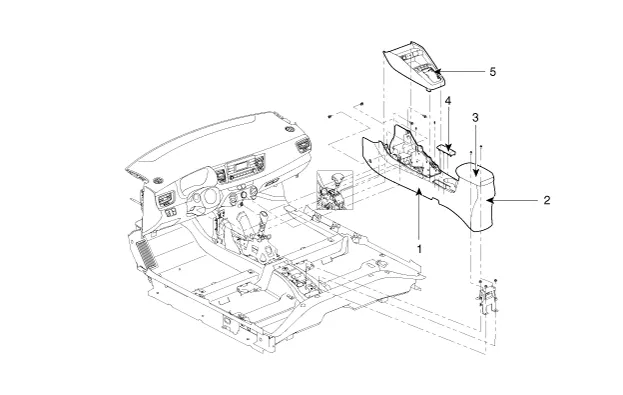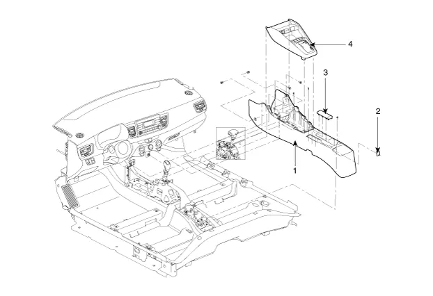 suelo 2. Cubierta trasera de la consola 3. Reposabrazos de la consola |