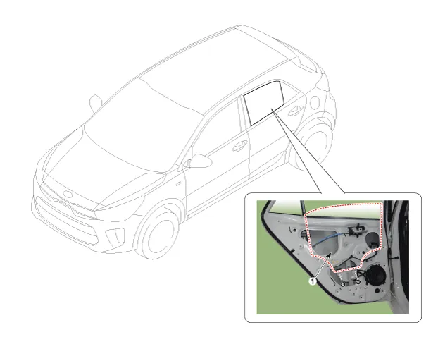 Componentes y localización de los componentes LOCALIZACIÓN DE LOS COMPONENTES 1. Guarnecido de la puerta trasera Procedimientos de reparación Sustitución Póngase guantes para proteger sus manos.