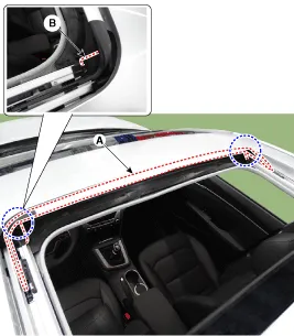 Componentes y localización de los componentes Componentes 1. Conjunto del techo solar Procedimientos de reparación Sustitución • Al desmontar utilizando un destornillador de punta plana o un extractor, envuelva las herramientas con cinta protectora para no dañar los componentes.