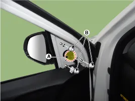 Desconecte el conector del retrovisor exterior (A) y afloje las tuercas (B).