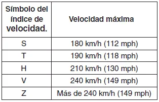 H - Símbolo de categoría de velocidad. Consulte la tabla de categorías de velocidad
