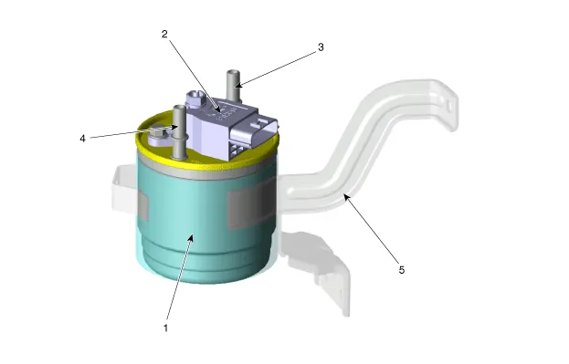 | 1. Filtro de combustible 2. Sensor de agua y calefactor de combustible 3. Conector rápido del tubo de alimentación de salida (↔ bomba de combustible de alta presión) |