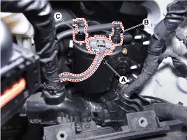 Desconecte el conector del calefactor del sensor de agua (A). |