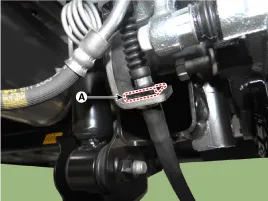 Tire de la llave de apriete como se indica en la flecha de abajo para aflojar el cable y desmonte el cable de estacionamiento (A).