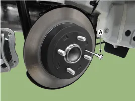 Si el descentramiento del disco de freno supera el límite especificado, cambiar el disco y medir el descentramiento de nuevo. |
