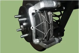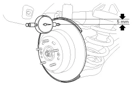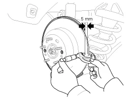 Coloque un calibre graduado de unos 5mm (0,2 pulg) en la circunferencia exterior del disco de freno y mida el desgaste del disco.