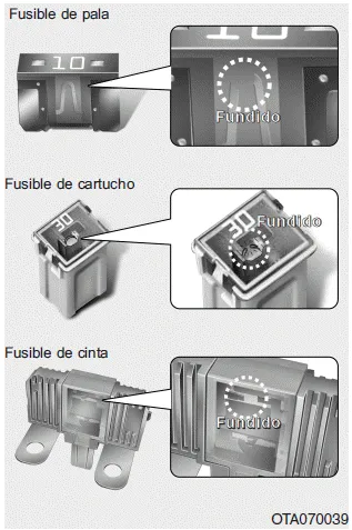 Si deja de funcionar alguna de las luces del vehículo o de los accesorios o controles, compruebe el fusible del circuito correspondiente. Si ha saltado un fusible, el elemento de su interior se habrá fundido.