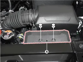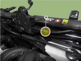 Retire el conjunto del pestillo inferior del capó (A) después de aflojar los pernos.