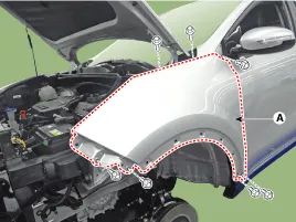 Quite la protección de las ruedas delanteras. (Consulte Molde lateral de la carrocería - "Protector de la rueda delantera") |