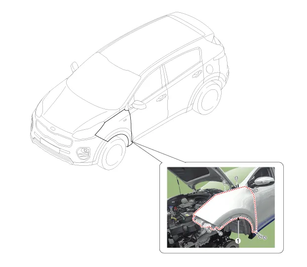 Componentes y localización de los componentes LOCALIZACIÓN DE LOS COMPONENTES 1. Conjunto del panel de protección principal Procedimientos de reparación Sustitución Póngase guantes para proteger sus manos.