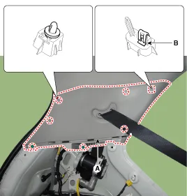 Desmonte el guarnecido del la columna del portón trasero (A).