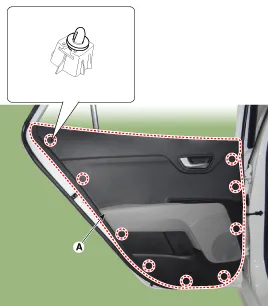 Desmonte el guarnecido de la puerta trasera (A).