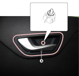 Desmonte la tapa de la manilla interior de la puerta trasera (A).