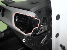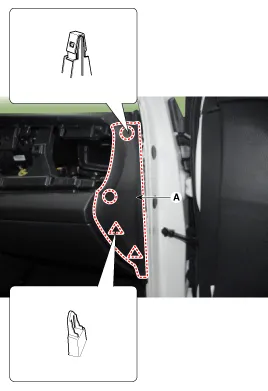 Desmonte el panel lateral del panel de protección del acompañante (A) tras extraer los tornillos de montaje.