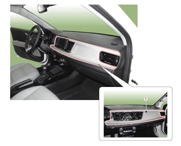 Componentes y localización de los componentes LOCALIZACIÓN DE LOS COMPONENTES 1. Conjunto del panel del tablero central Procedimientos de reparación Sustitución Póngase guantes para proteger sus manos.