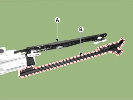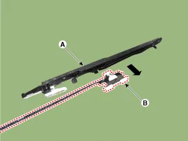 Separe el conjunto de la guía (A) y el cable (B) empujándolos en la dirección indicada por la flecha.