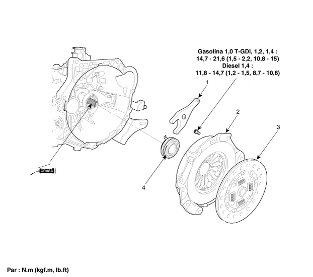 Monte el conjunto de la transmisión. G 1,2 MPI (Consulte "Sistema de la transmisión manual : Transmisión manual") |