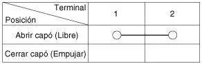 Compruebe la continuidad entre los terminales y la conexión a tierra como se indica abajo. (Consulte Carrocería - "Conjunto del pestillo del capó")