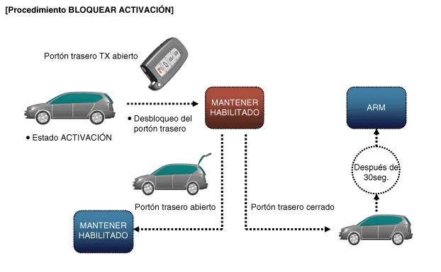 MANTENER ESTADO ACTIVADO (Bloquear alarma: Portón trasero) ※Opción sin PTL |