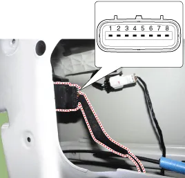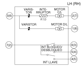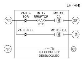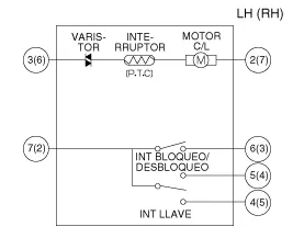 la puerta delantera 6. Interruptor y actuador de la puerta trasera 7. Interruptor y actuador del portón trasero |