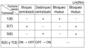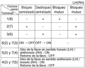 Compruebe el funcionamiento del actuador conectando la corriente y la conexión a tierra como se indica abajo. Para evitar dañar el accionador, aplique el voltaje de la batería sólo un momento. [Motor de bloqueo centralizado]