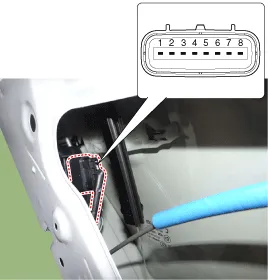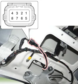 Desconecte el conector del conjunto del interruptor de abertura del portón trasero.